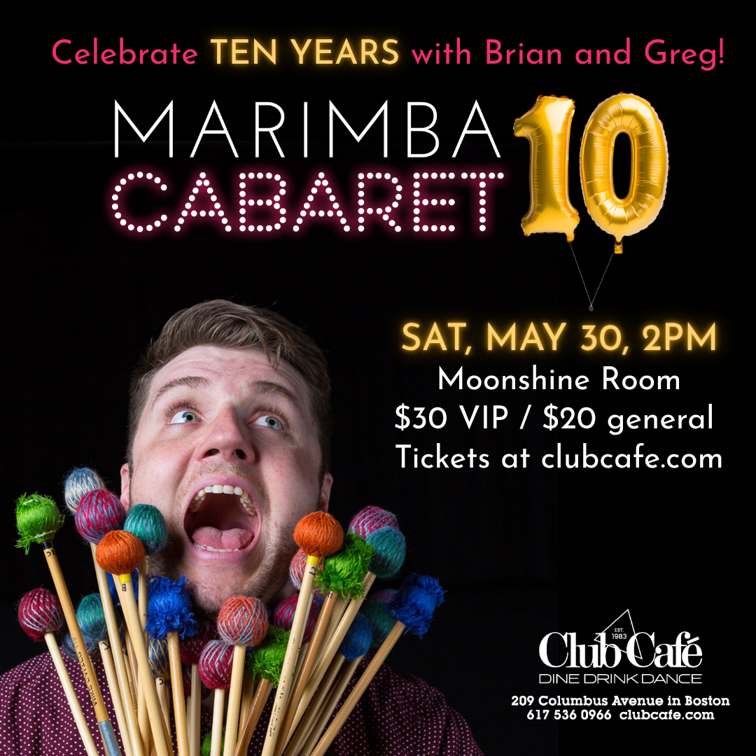 Celebrate ten years of MARIMBA CABARET where it first began – the Moonshine Room at Club Cafe!